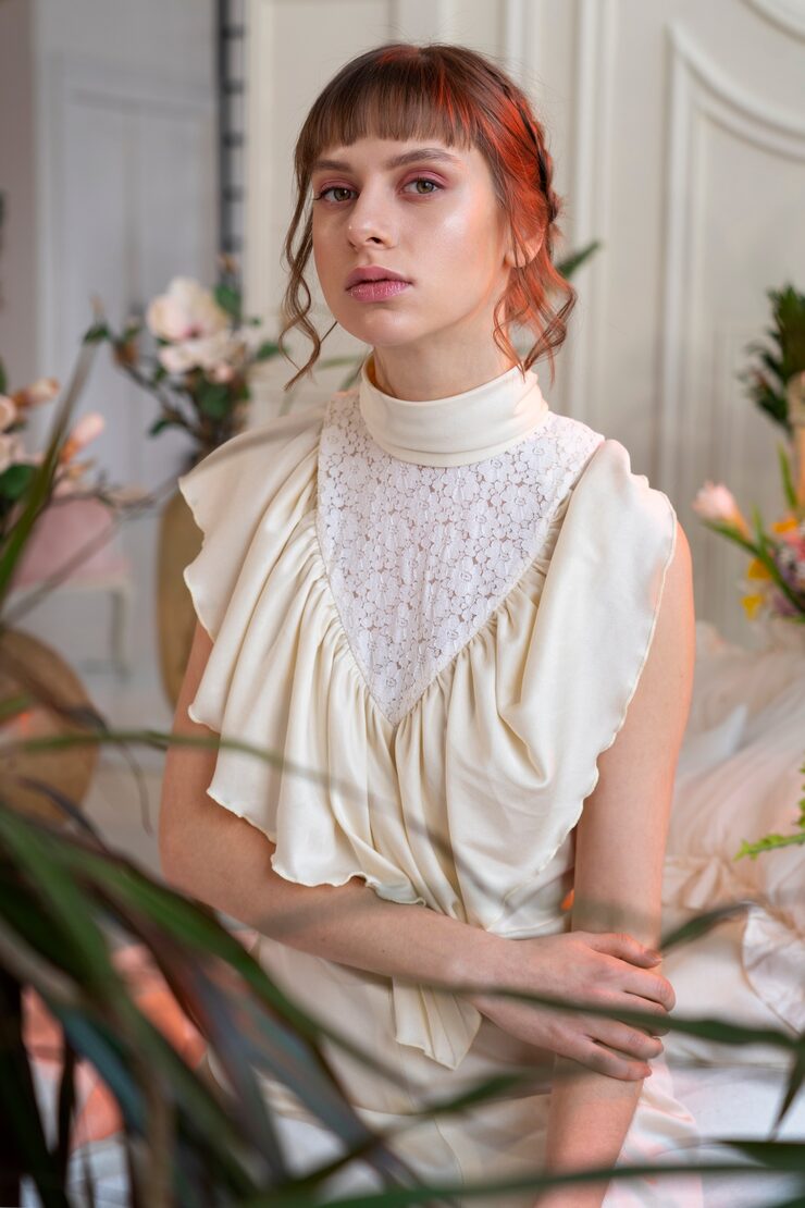 Строгость графического узора из ромбов уравновешивают игривые оборки на манжетах и нижней планке, а также перламутровые пуговицы. Небольшие, но невероятно женственные детали!