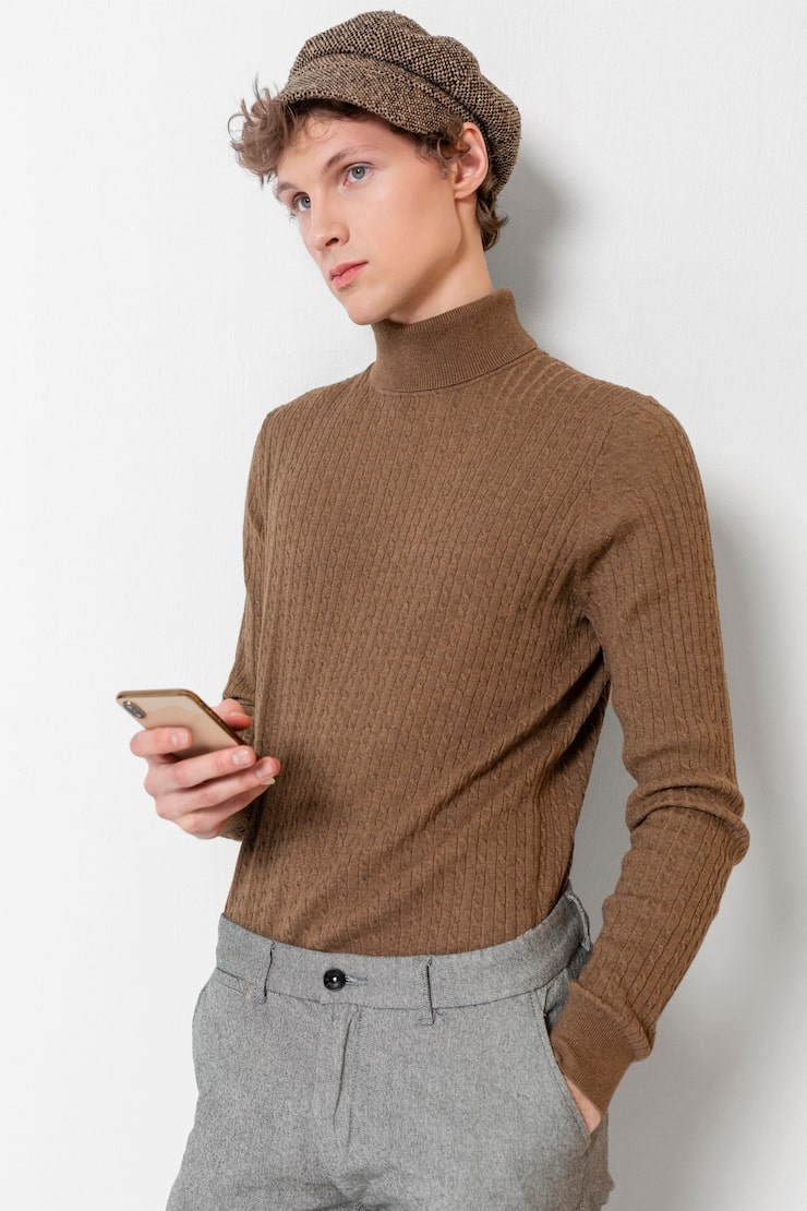 Пуловер для мужчин: V-образный вырез и ромбовый узор