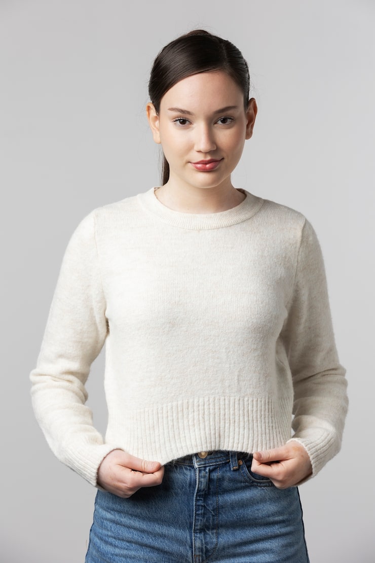Белый пуловер с воротником-гольфом
