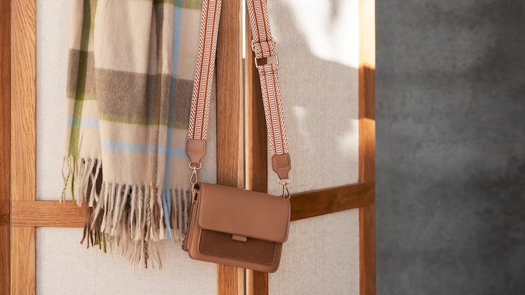 Кардиган, перекинутый через плечо, и стильная сумка