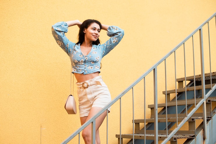 Яркий желтый жакет и топ на бретельках
