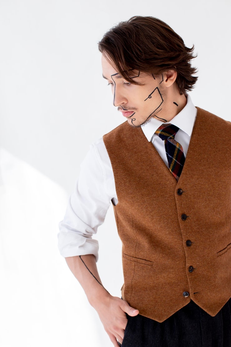 Жилет с декоративным узором и V-образным вырезом