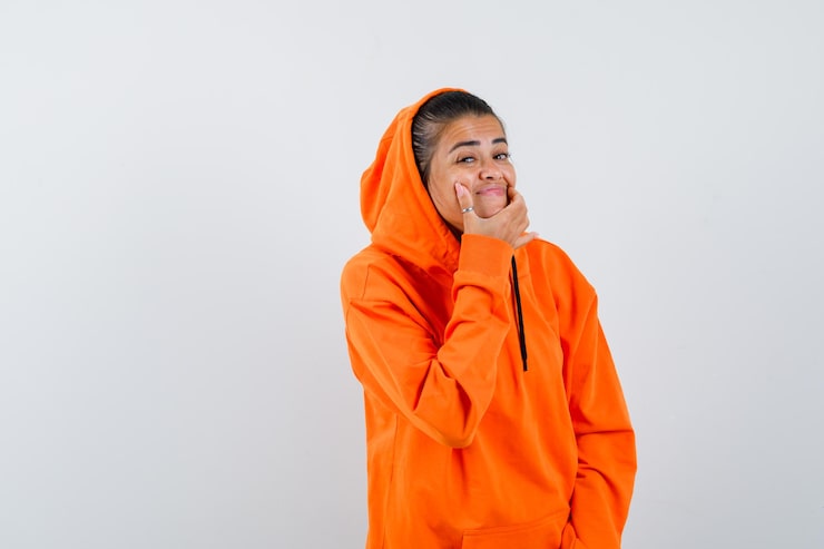 Яркий пуловер с капюшоном