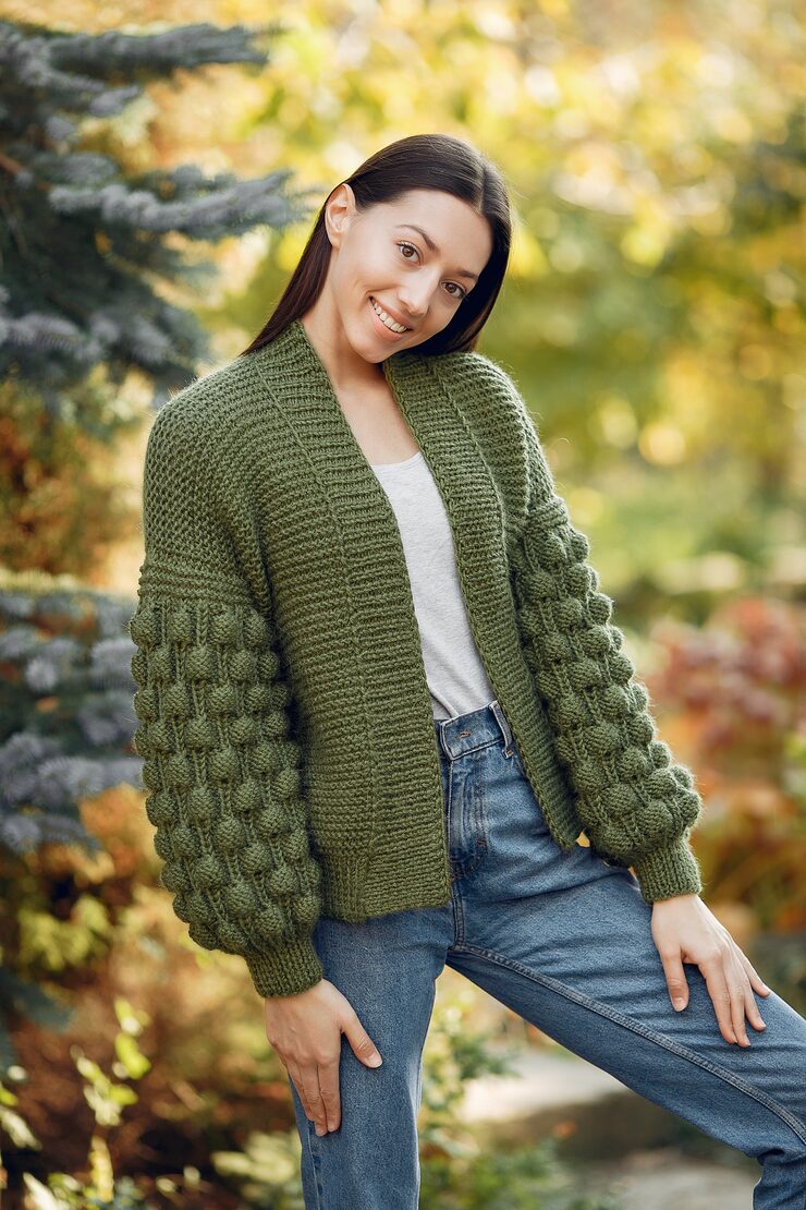 Вязаный жакет с рукавами буф