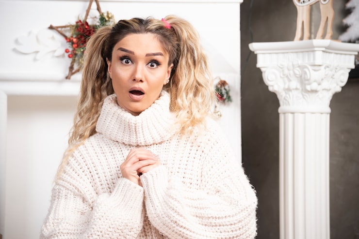 Объемный пуловер с вертикальным вырезом