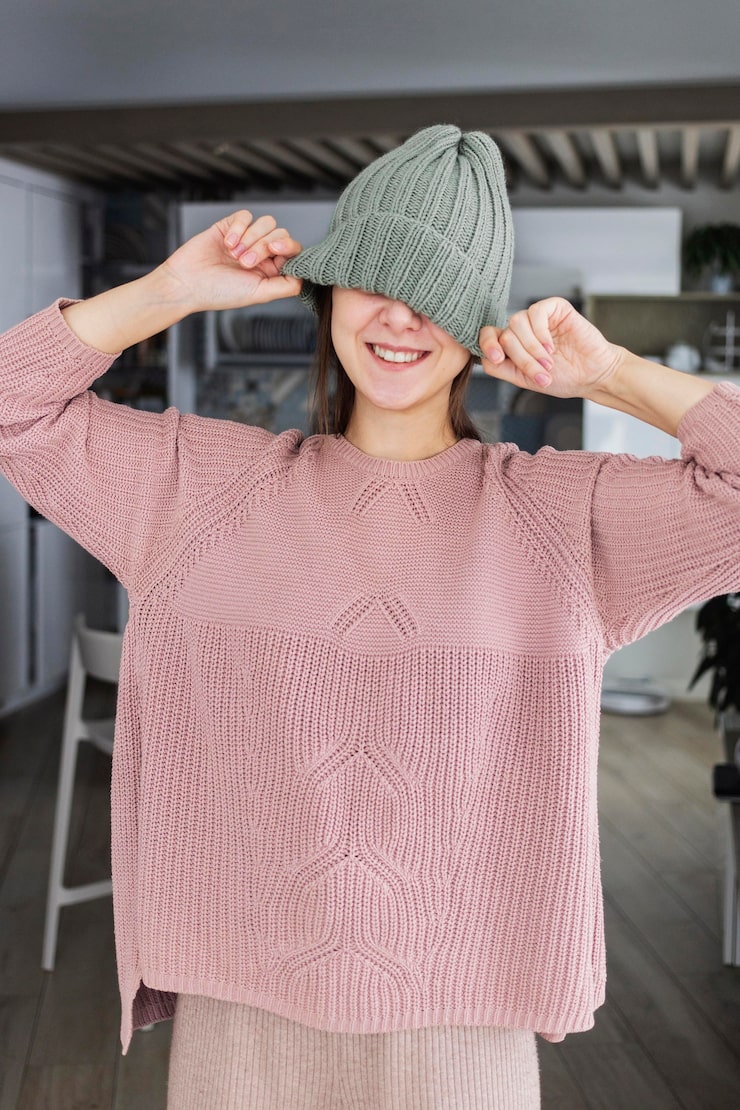Пуловер с ажурным узором «листья» — приталенный и удлиненный крой