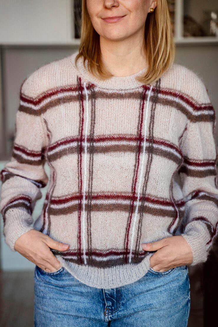 Этот незатейливый пуловер с жаккардовым узором, изображающим ромбы, выполнен в традиционной сине-белой цветовой палитре, но ярко-розовая шапка и сияющие линии, вышитые стебельковым швом, придают ему удивительно свежий и современный вид. Кроме того, вы имеете возможность адаптировать этот дизайн, изменив используемые цвета. Размеры пуловера: 36/38 (42/44) 48/50. Размеры шапки: обхват головы 53-55 (56-58) см. […]