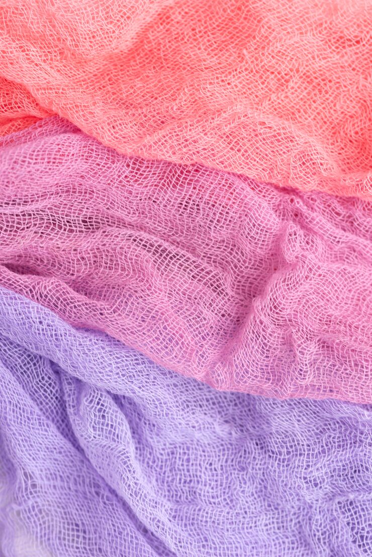 Изящный палантин выполнен из хлопка с вискозой светло-лилового оттенка, используя ажурный узор с волнистой текстурой.