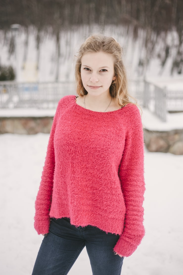 Нам необходим такой уютный и привлекательный пуловер с жаккардовыми полосками. Для его изготовления мы выбрали особенно мягкую и износостойкую пряжу из микрофибры. Сначала спинка, перед и рукава вяжутся по отдельности с регланными скосами, после чего все петли переносятся на круговые спицы для оформления кокетки.