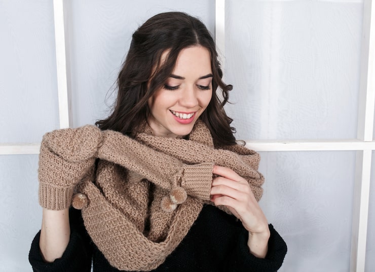 во втором круге вязания выполняются следующие действия: один петелька провязывается с двойным наклоном влево, затем одна лицевая петля, одна накид, одна лицевая петля, одна накид, одна лицевая петля. От этого места операции повторяются постоянно.