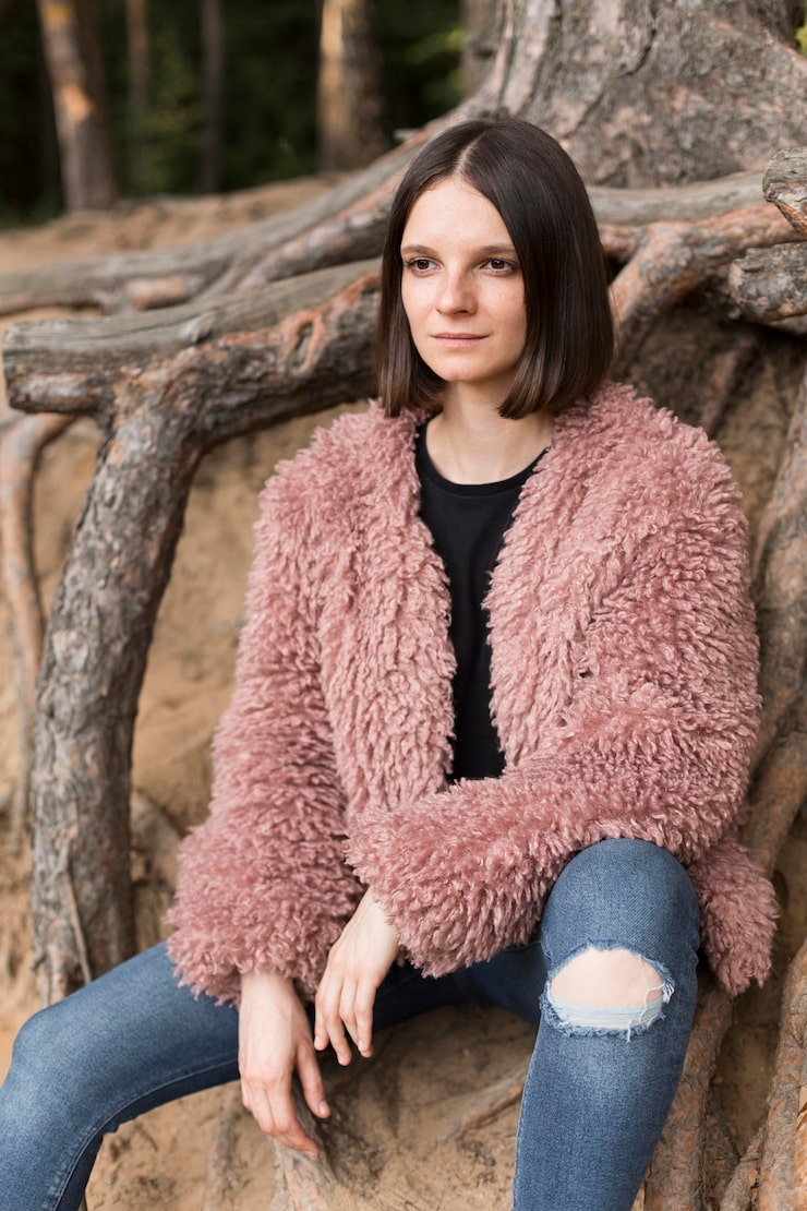 Связать один изнаночный ряд лицевыми петлями, затем 5,5 см, что соответствует 16 рядам, узором №1. Закрыть петли. Нижний край жакета, боковые части полочек и края воротника обвязать в один прием четырьмя круговыми рядами каймой из «ракушек», выполняя в угловых петлях каждого первого и второго кругового ряда по три столбика без накида. Замкнуть круговой ряд соединительным столбиком в первую петлю. В третьем круговом ряду адаптировать узор к обвязываемым участкам, добавляя или уменьшая количество петель между «ракушками» при необходимости. Края рукавов обвязать четырьмя рядами каймы из «ракушек», начиная первый ряд с 43 столбиками без накида.